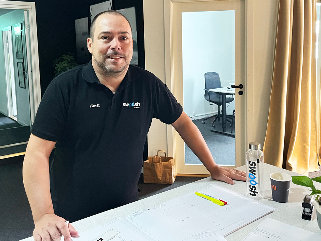 När Emil Fjellström bestämde sig för att lämna jobbet som pedagog i Arvidsjaur visste han inte att nästa steg skulle bli starten på en helt ny bana. Samtidigt var det unga företaget Swoosh i färd med att bygga upp sin nya verksamhet inom relining, en metod som ännu inte fanns i Umeå. Som Swosch första anställda fick Emil chansen att åka till Stockholm och gå som lärling hos en rutinerad reliningstekniker där han lärde sig hantverket från grunden. Med ny kunskap och växande erfarenhet återvände han norrut för att ta sig an företagets första reliningsuppdrag. Idag arbetar Emil som arbetsledare för relining och har arbetsuppgifter som innefattar allt från den dagliga driften till uppföljning av ekonomi, budget och kvalitetssäkring.